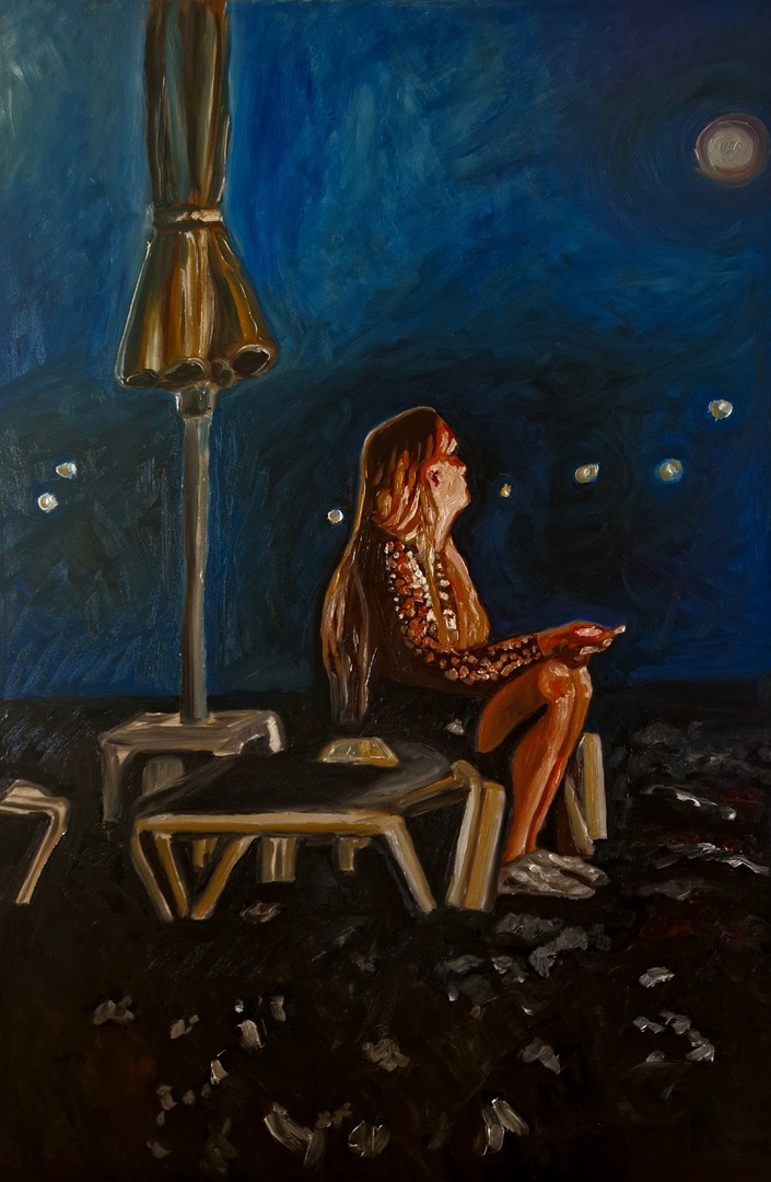 "Lichter im Wald", 100x100cm, Öl auf Leinwand