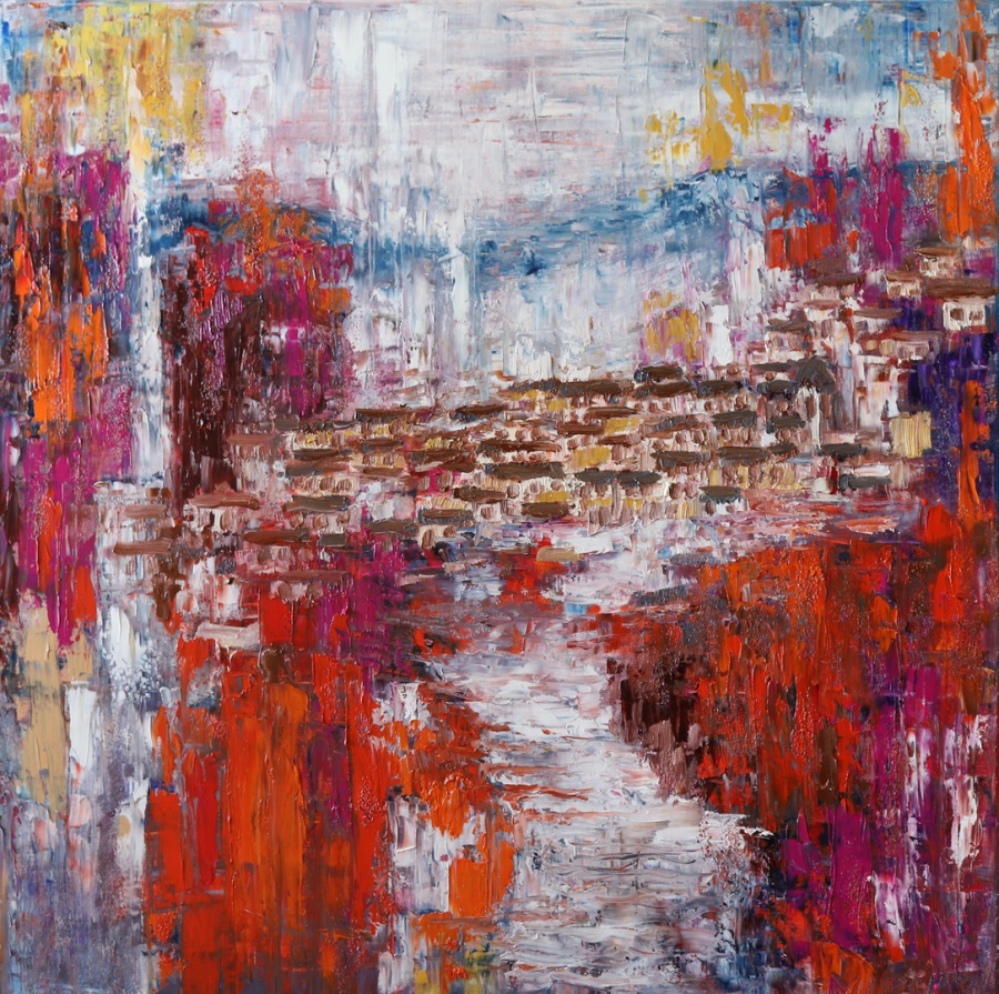 "Le Village", 80x80cm, Öl auf Leinwand